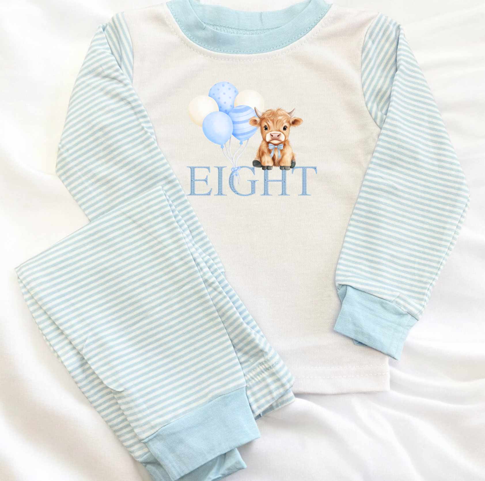Light Blue Stripe Highland Cow Pjs